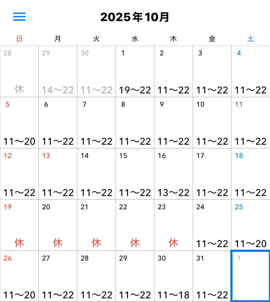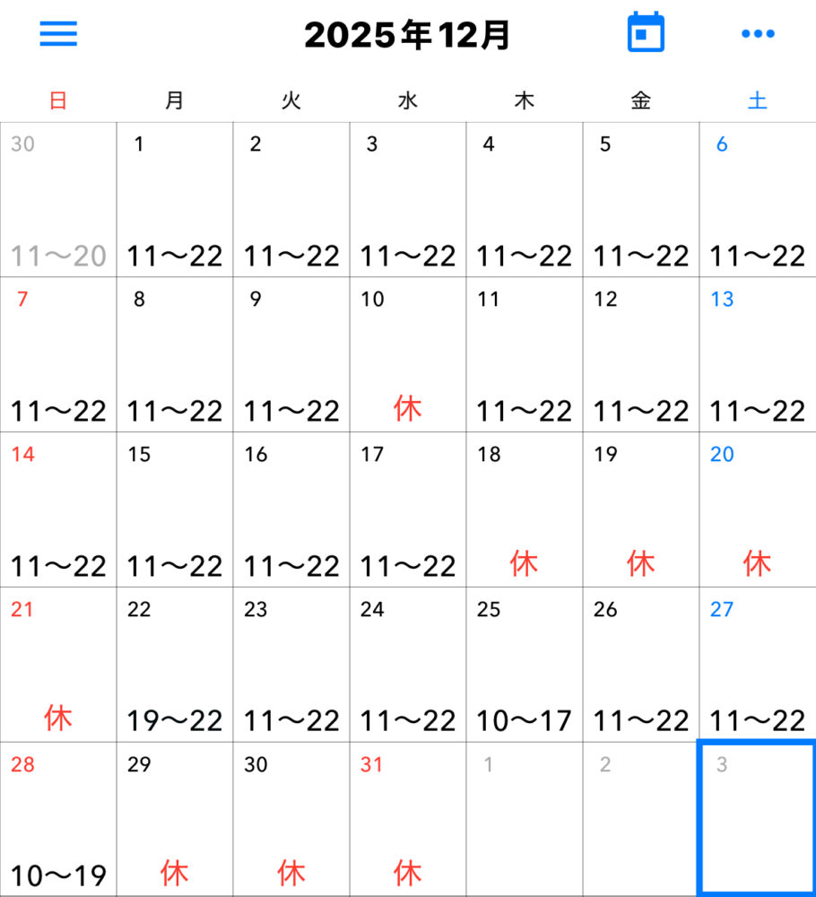 営業カレンダー