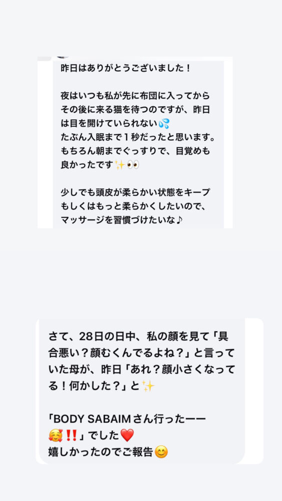 それでも肩や腕も緩めると、最後には頭皮が緩みましたね! お忙しい中睡眠不足もあるかと思いますのでゆっくりできて良かったです✨✨🌸