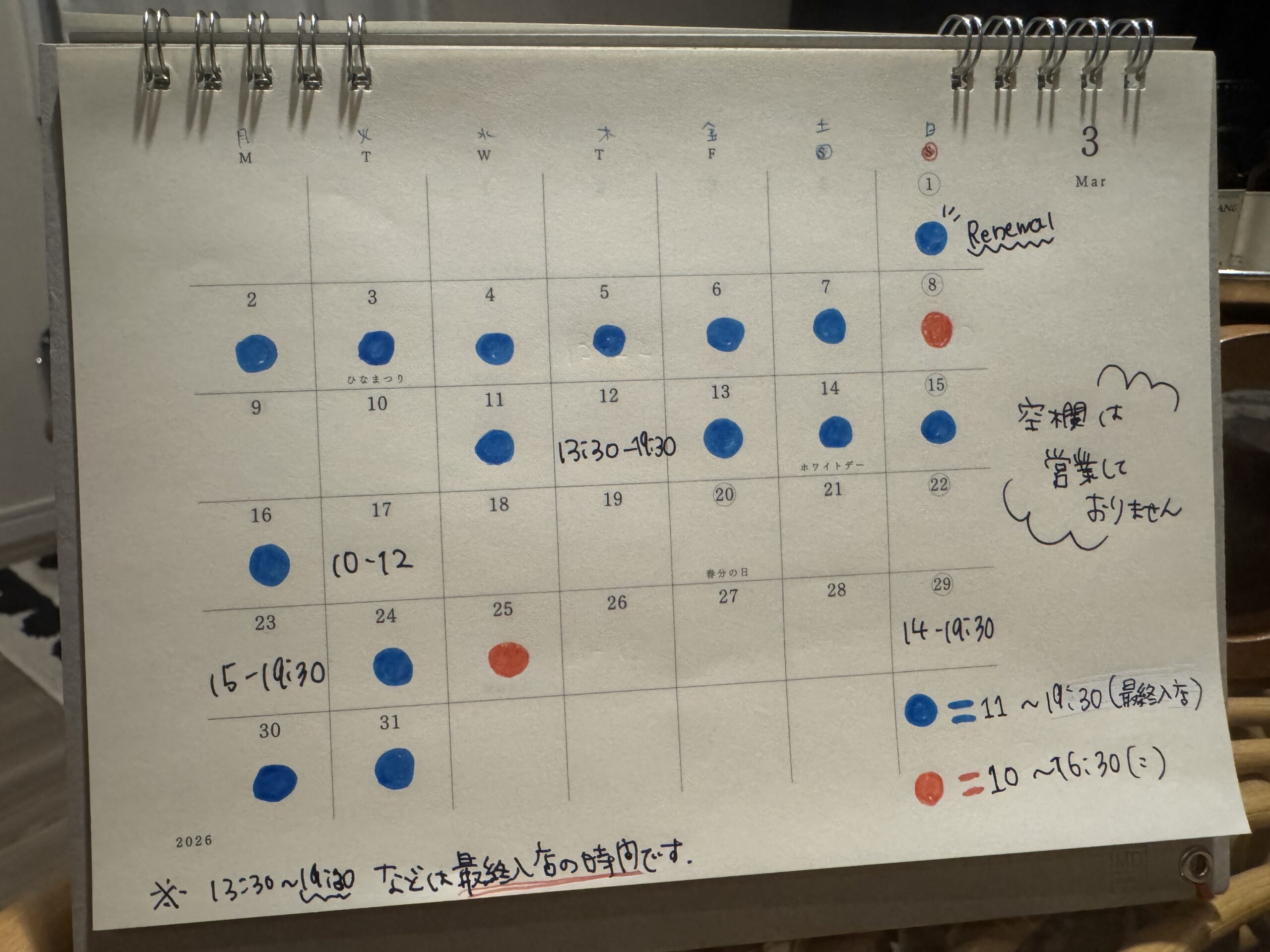 営業カレンダー